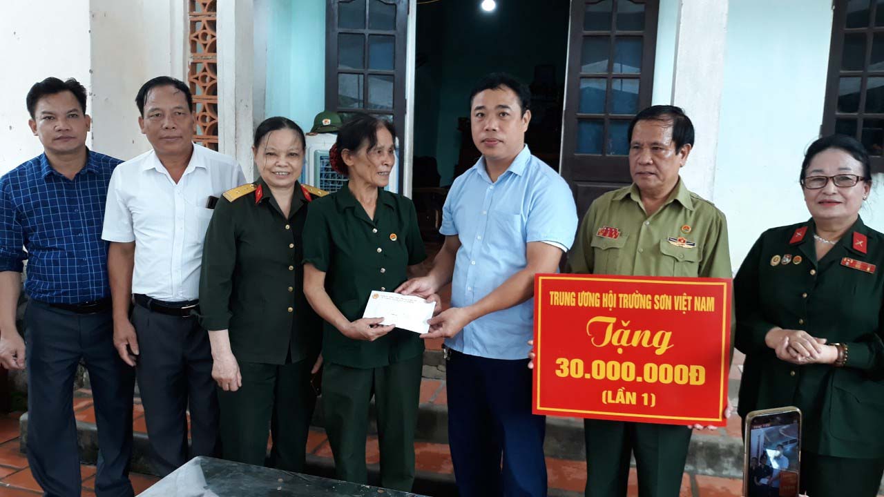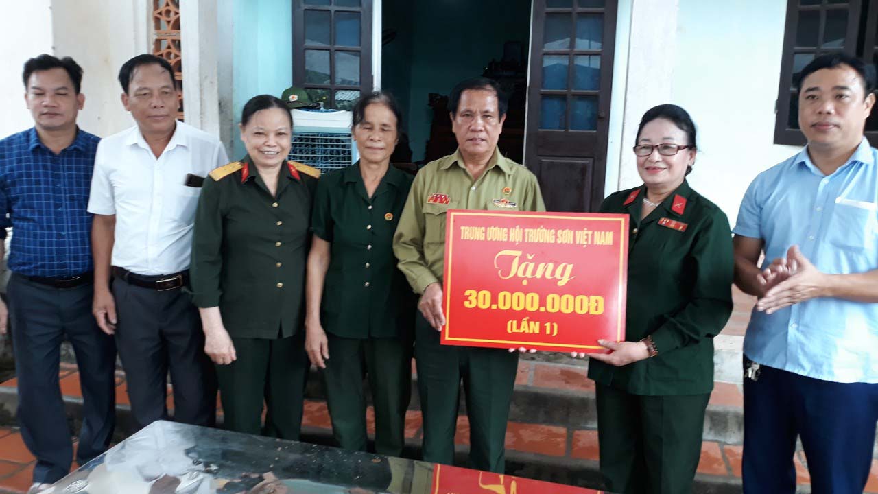 Hôm nay một ngày vui mừng phấn khởi nhất đối với gia đình đồng chí Tạ Văn Qùy và Nguyễn Thị Hò. Ngày vợ chồng đồng chí và gia đình được đón tiếp các vị khách mang món quà tri ân đợt1 - 30 Triệu đồng, trong tổng số 60 Triệu đồng từ “Quỹ từ thiện công đoàn giao thông vận tải Việt Nam”, được chuyền về Trung ương Hội Trường Sơn Việt Nam, đến Hội Trường Sơn Thành phố Hà Nội. hôm nay Đồng chí Nguyễn Thị Thu Yến và đồng chí Ngô Thị Tuyết - Ủy viên ban chấp hành Hội TSVN, Trưởng Ban công tác Nữ và Phó Chủ tịch Thường trực Hội Trường Sơn thành phố Hà Nội, đã đến trao tặng đợt 1 ( 30 triệu đồng) tại gia đình đồng chí Nguyễn Thị Hò. Trước sự chứng kiến của Thường trực Hội Trường Sơn huyện Thạch Thất - đồng chí Nguyễn Xuân Lề và đồng chí Nguyễn Sơn Hải và sự chứng kiến của Thường trực Đảng ủy xã Bình Yên: ông Phạm Ngọc Họa Phó bí thư thường trực, Chủ tịch HĐND xã và ông Nguyễn Văn Sức Đảng ủy viên, Chủ tịch MTTQ Việt Nam xã Bình Yên. Sự có mặt động viên của Chi hội Trường Sơn thôn Sen Trì, cán bộ nhân dân thôn Sen Trì, Nguồn kinh phí hỗ trợ sẽ giúp gia đình hội viên xây dựng lại căn nhà cũ kỹ, tạm bợ , hở trước thiếu sau, đeo đẳng vợ chồng đồng chí mấy chục năm qua, bởi vì hoàn cảnh cúa 2 cựu chiến binh già, chồng là chiến sỹ bộ binh Quân khu 5 ra quân chuyển ngành năm 1977 tái ngũ bảo vệ biên giới năm 1979, năm 1986 vì sức khỏe yếu đồng chí ra quân với chế độ bệnh binh, còn vợ là Nguyễn Thị Hò nhập ngũ năm 1971 là chiến sĩ Tiểu đoàn nữ Trưng Trắc tỉnh Hà Tây, vào Trường Sơn ở Sư đoàn ô tô 571, đến 1975 về phục viên làm ruộng, được hưởng chế độ theo nghị định 142 cho đến nay . Hiện náy 2 vợ chồng sống cảnh già với nhau vẻn vẹn mỗi tháng 2670.000 đồng, các con xây dựng gia đình đã đi ở riêng, cũng là một điều kiện giúp cho đồng chí Hò tham gia nhiều công tác xã hội trong thôn, luôn xứng đáng là Đảng viên mẫu mực.