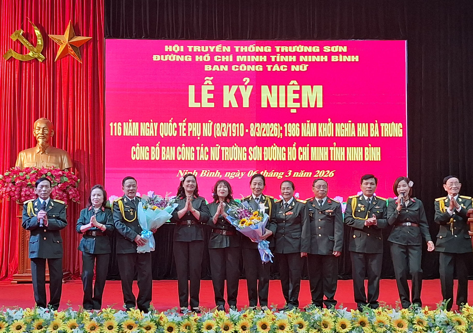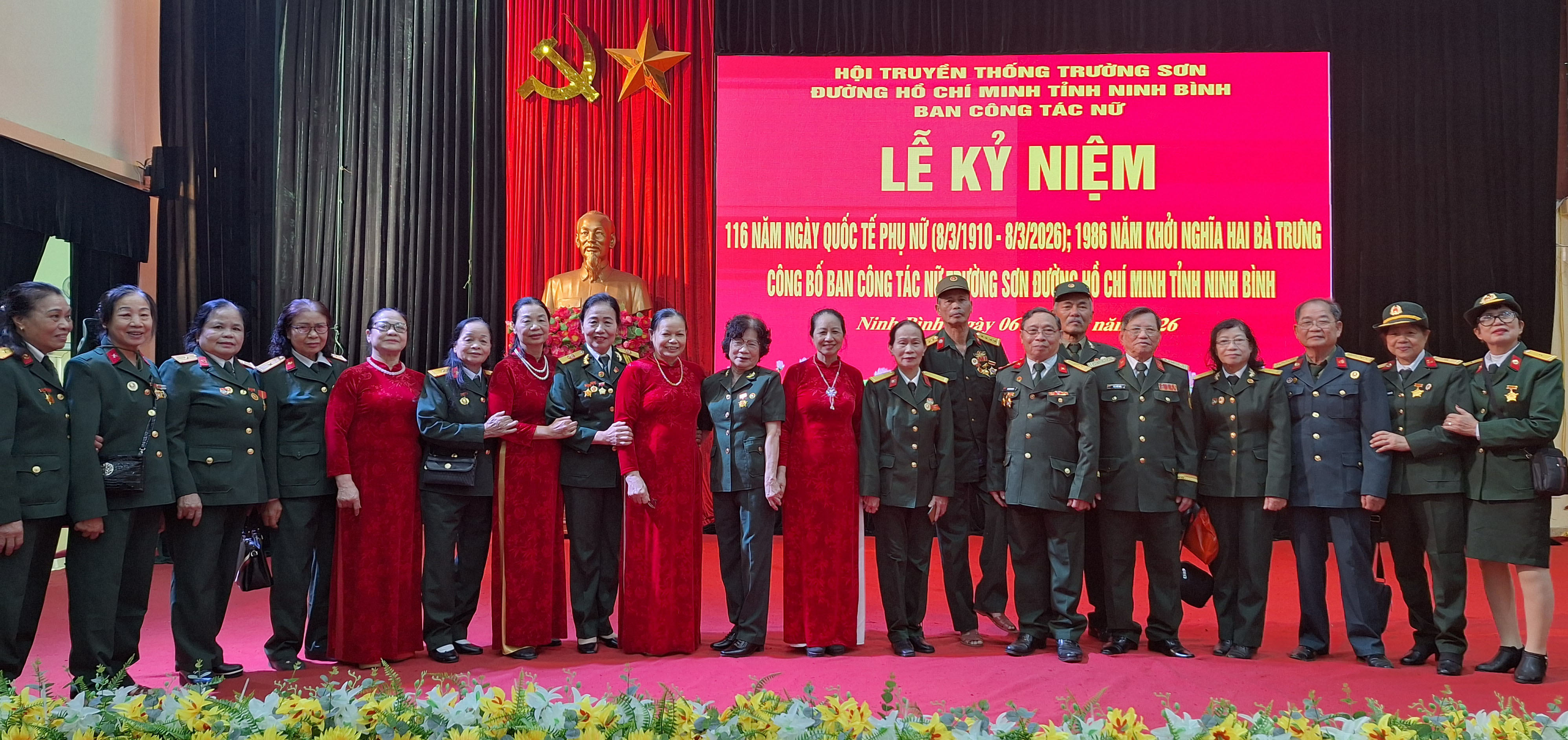 Sáng ngày 6/3/2026, tại hội trường Bộ chỉ huy Quân sự tỉnh Ninh Bình; Ban công tác nữ Hội truyền thống Trường Sơn – Đường Hồ Chí Minh tỉnh Ninh Bình (Hội TSNB). Tổ chức Lễ kỉ niệm 116 năm Ngày Quốc tế Phụ nữ 8/3 và công bố Quyết định Sáp nhập và thành lập Câu lạc bộ văn nghệ Trường Sơn tỉnh Ninh Bình.