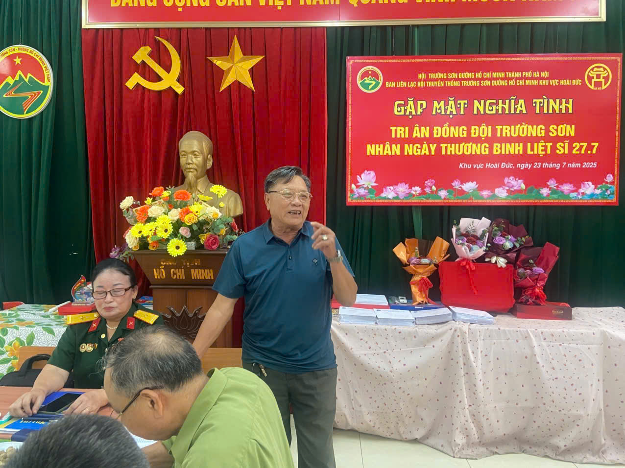 Sáng ngày 27/7/2025, Tại văn phòng Hội, Ban liên lạc Hội truyền thống Trường Sơn – Đường Hồ Chí Minh khu vực Hoài Đức thành phố Hà Nội (BLL Hoài Đức); Tổ chức gặp mặt nghĩa tình đồng đội Trường Sơn nhân Kỷ niệm 78 năm Ngày TB-LS (27/7/1947-27/7/2025).
