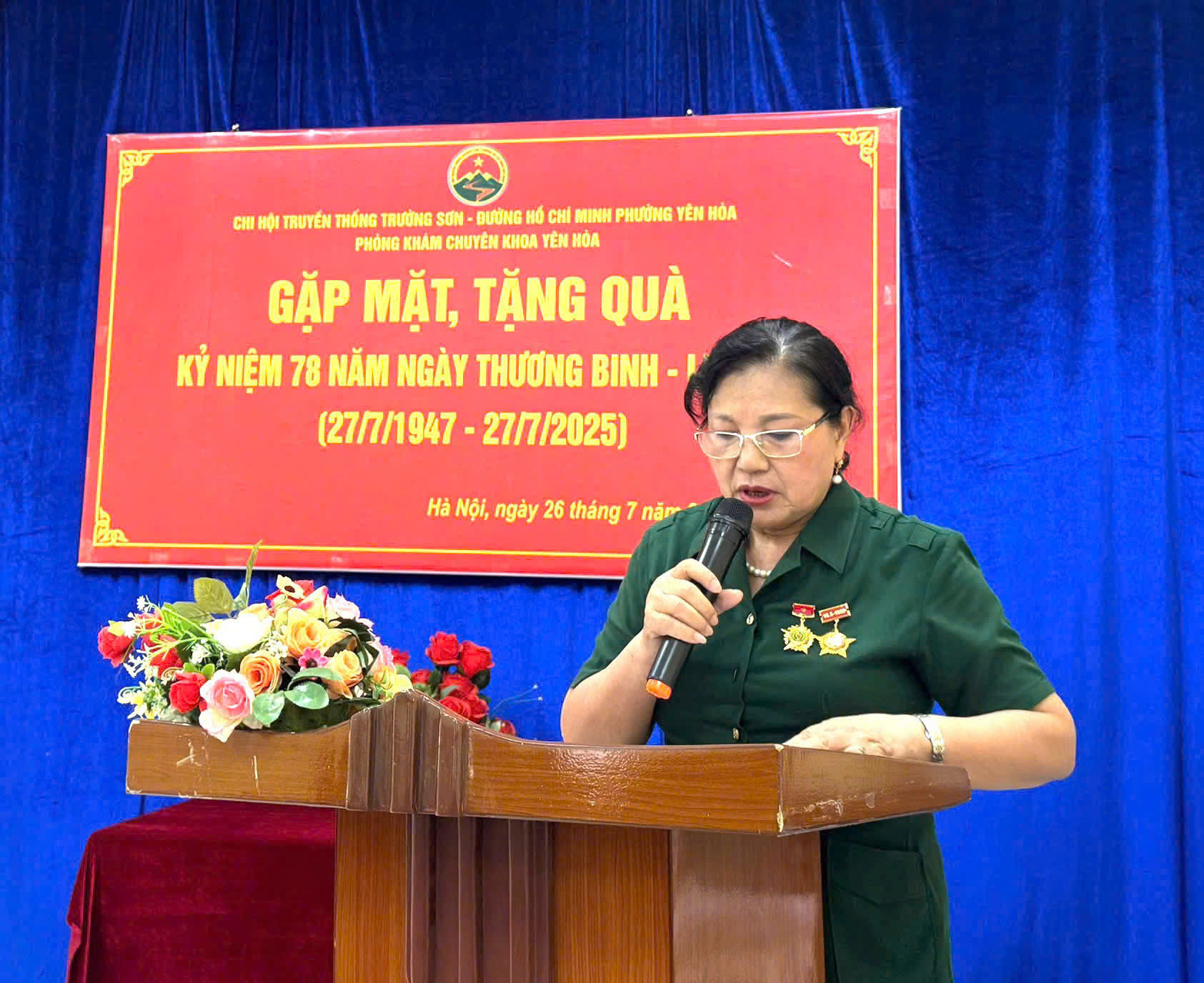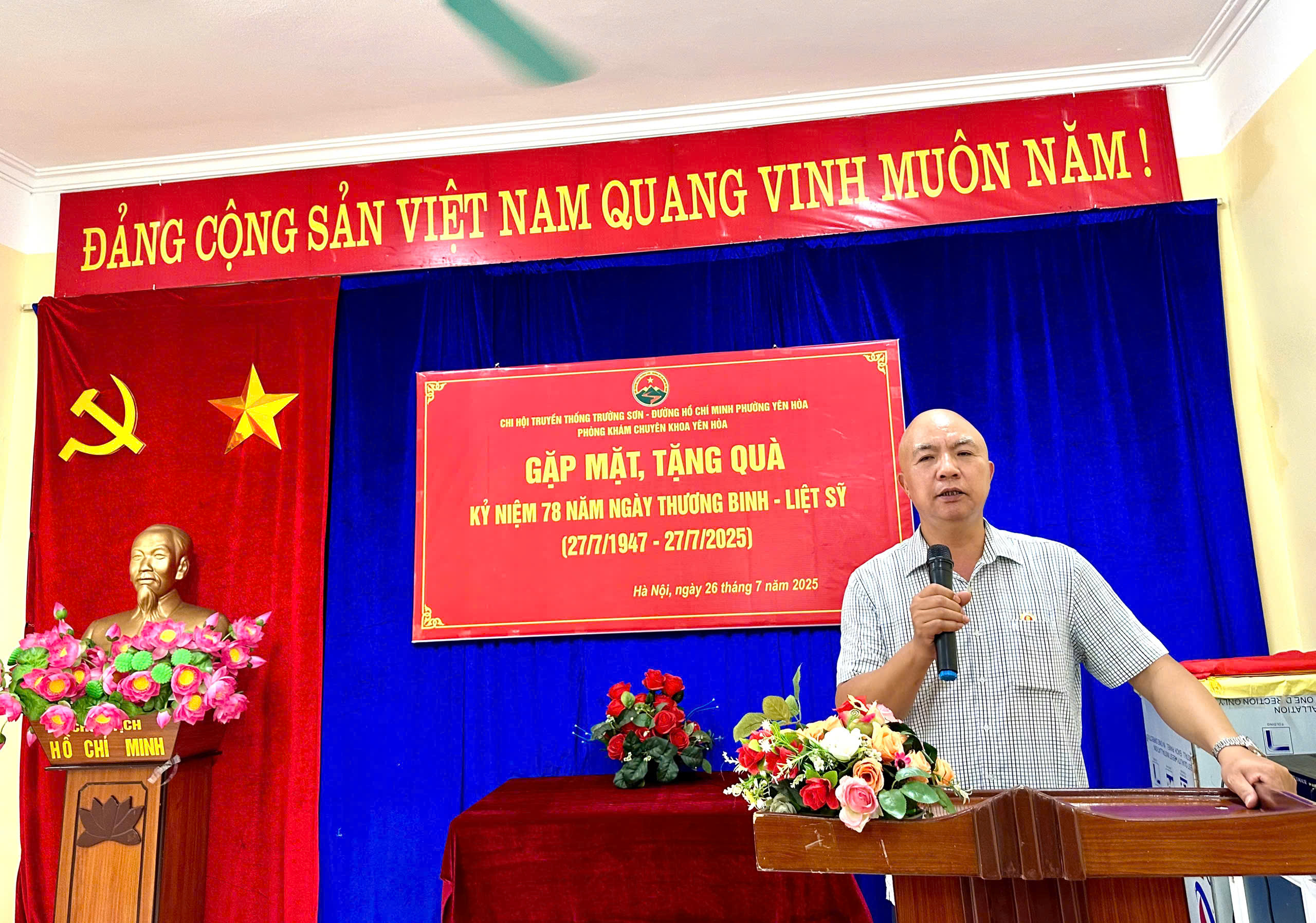 Chiều ngày 26/7/2025, tại phòng họp số 17 của phường, Chi Hội Trường Sơn-Đường Hồ Chí Minh phường Yên Hòa TP Hà Nội, cùng đơn vị đồng hành Phòng khám chuyên khoa Yên Hòa, long trọng tổ chức Gặp mặt tặng quà thương binh, nạn nhân chất độc da cam, kỷ niệm 78 năm ngày Thương binh-Liệt sỹ (27/071947-27/07/2025).
