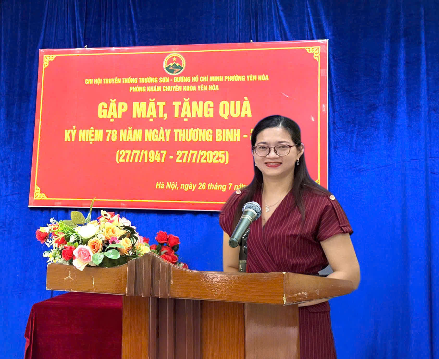 Với tình cảm, sự khâm phục, kính trọng, “Uống nước nhớ nguồn”, “ăn quả nhớ người trồng cây”, đời đời nhớ công ơn các bậc cách mạng tiền bối, các anh hùng liệt sĩ, các thương bệnh binh đã hy sinh xương máu vì nền độc lập, tự do thống nhất đất nước, đại diện Phòng khám chuyên khoa Yên Hòa, chị Trần Nguyễn Bích Hiền đã phát biểu cảm tưởng, gửi tấm lòng tri ân của đội ngũ cán bộ y bác sỹ phòng khám và trao tặng 17 suất quà trị giá 5.100.000 đồng các bác hội viên: Thương binh, nạn nhân chất độc Da cam/Dioxin, nữ cô đơn, có hoàn cảnh khó khăn của Chi Hội Trường Sơn phường Yên Hòa.