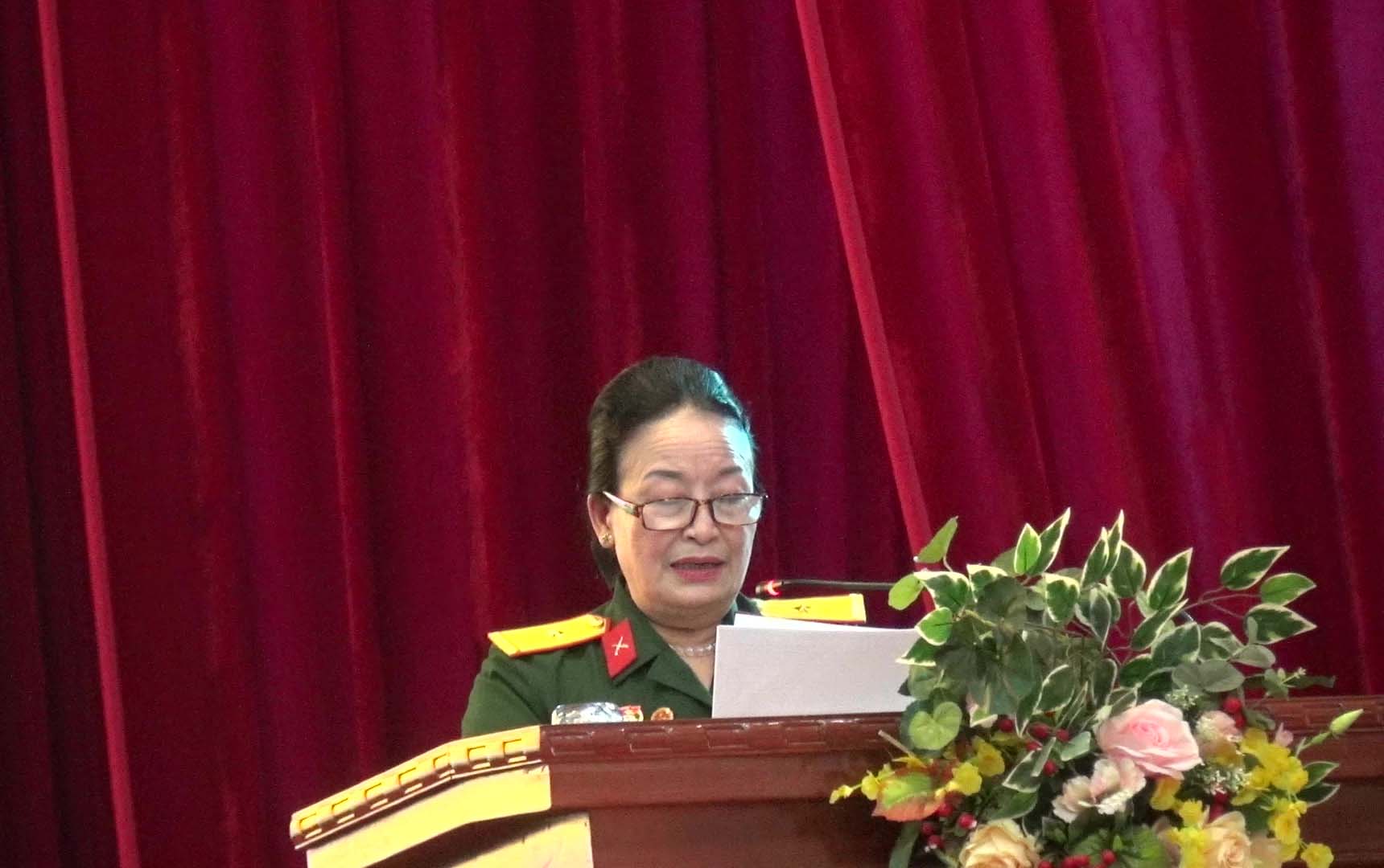 Đồng chí Ngô Thị Tuyết - Chủ tịch Hội Báo cáo Tổng kết 10 năm Hội BĐTS huyện Hoài Đức.