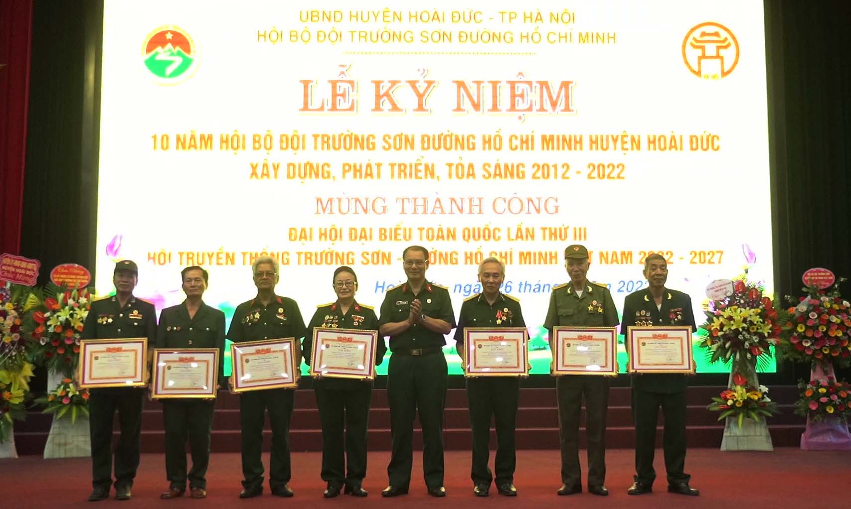 Với những thành tích đạt được trong 10 năm xây dựng, phát triển và tỏa sáng, Hội Bộ đội Trường Sơn huyện Hoài Đức đã được Hội Trường Sơn Việt Nam tặng Cờ Thi đua xuất sắc, 2 Bằng khen của Chính phủ cho tập thể và cá nhân, Bằng khen của Hội Trường Sơn Việt Nam cho 2 tập thể và 5 cá nhân; Giấy khen của Hội Trường Sơn thành phố Hà Nội cho 10 tập thể và 20 cá nhân; Giấykhen của UBND huyện Hoài Đức cho 4 tập thể và 15 cá nhân.