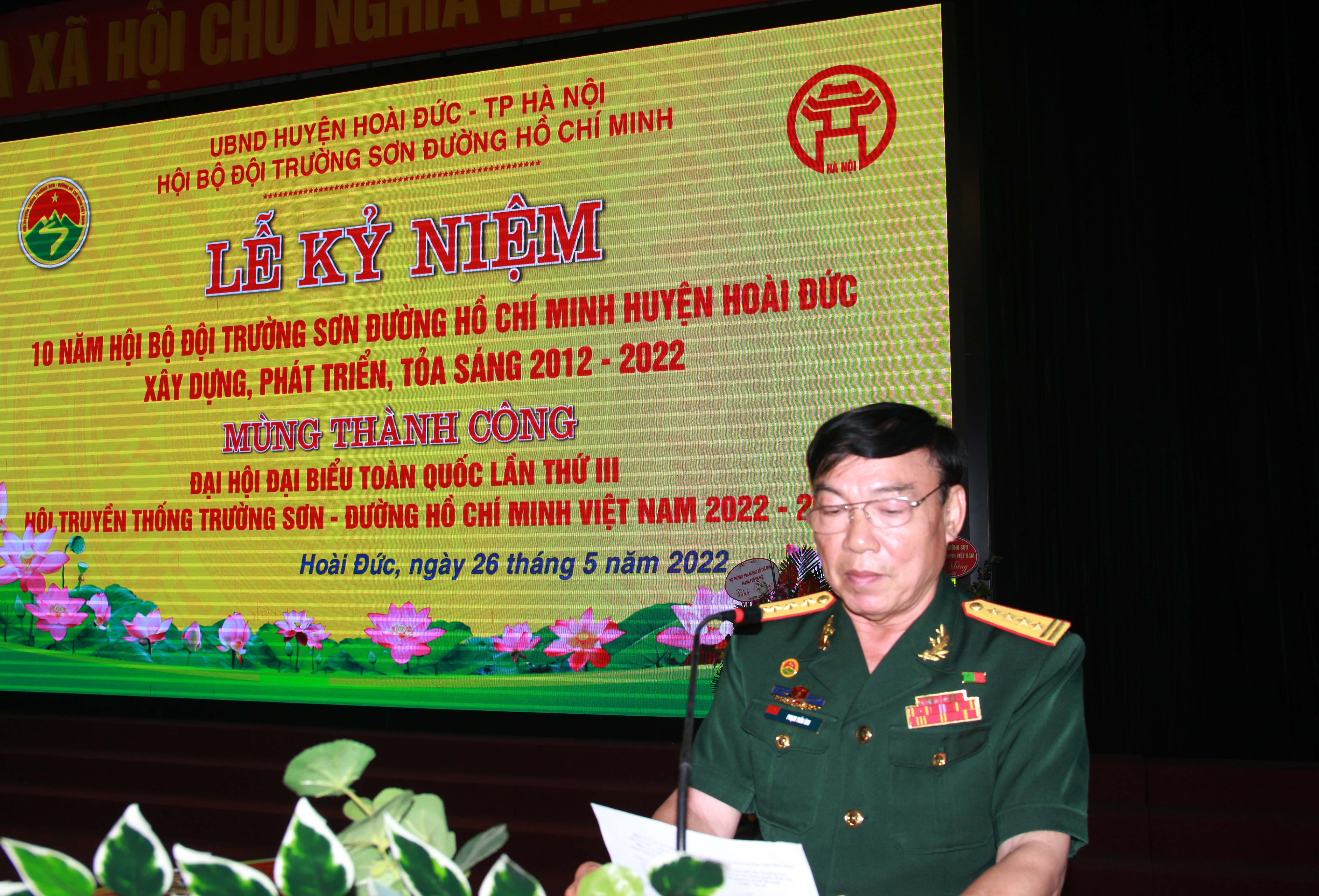Sáng ngày 26/5/2022, tại hội trường UBND huyện Hoài Đức, đã khai mạc trọng thể Lễ kỷ niệm 10 Hội Bộ đội Trường Sơn huyện Hoài Đức xây dựng, phát triển và toản sáng (2012-2022); Chào mừng thành công Đại hội đại biểu Hội TTTS-ĐHCM toàn quốc nhiệm kỳ III ( 2022-2027).