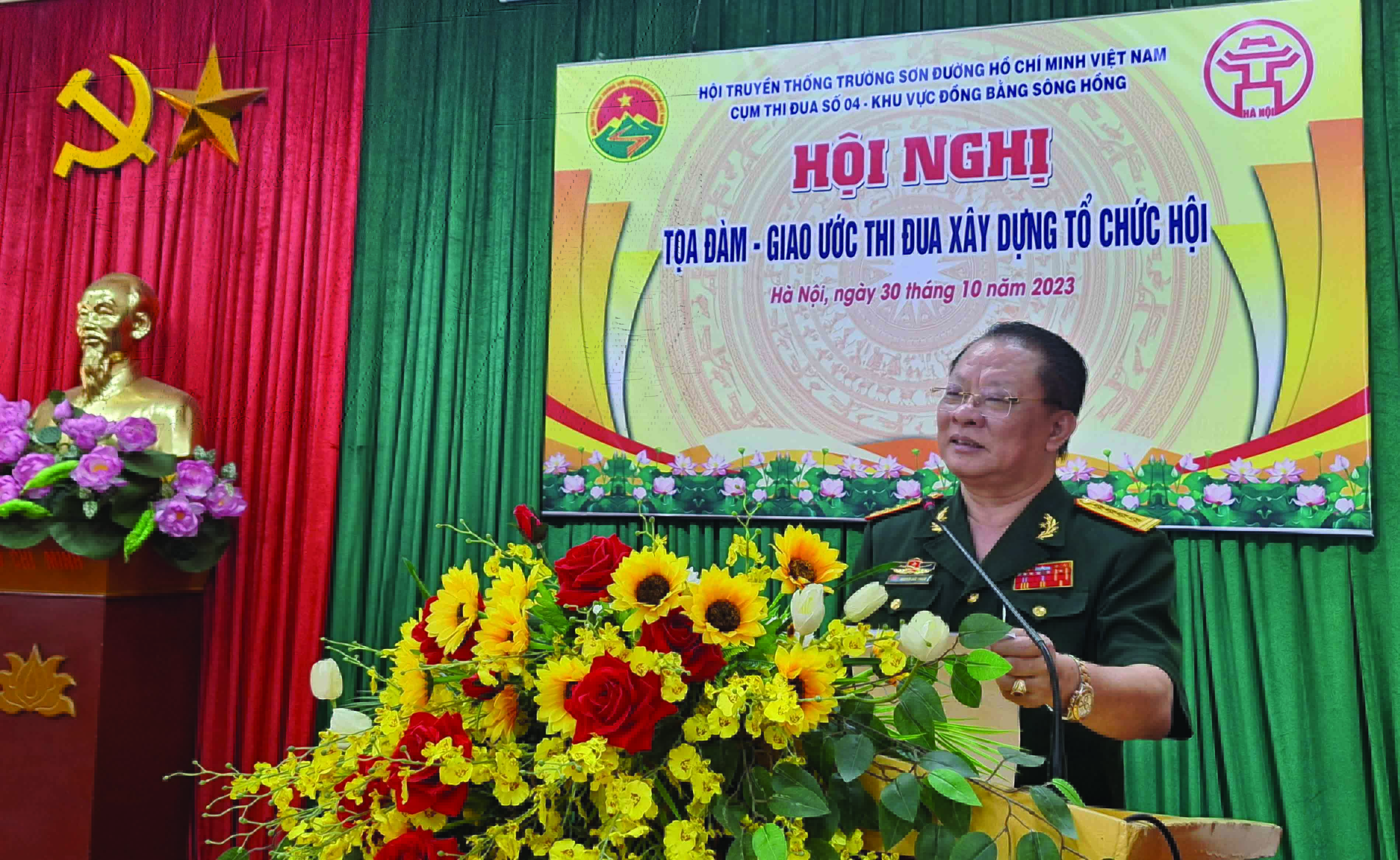Đồng chí Thiếu tướng Võ Sở-Chủ tịch Hội Trường Sơn Việt Nam, thay mặt lãnh đạo Hội, phát biểu chúc mừng và giao nhiệm vụ cho Cum thi đua số 4.