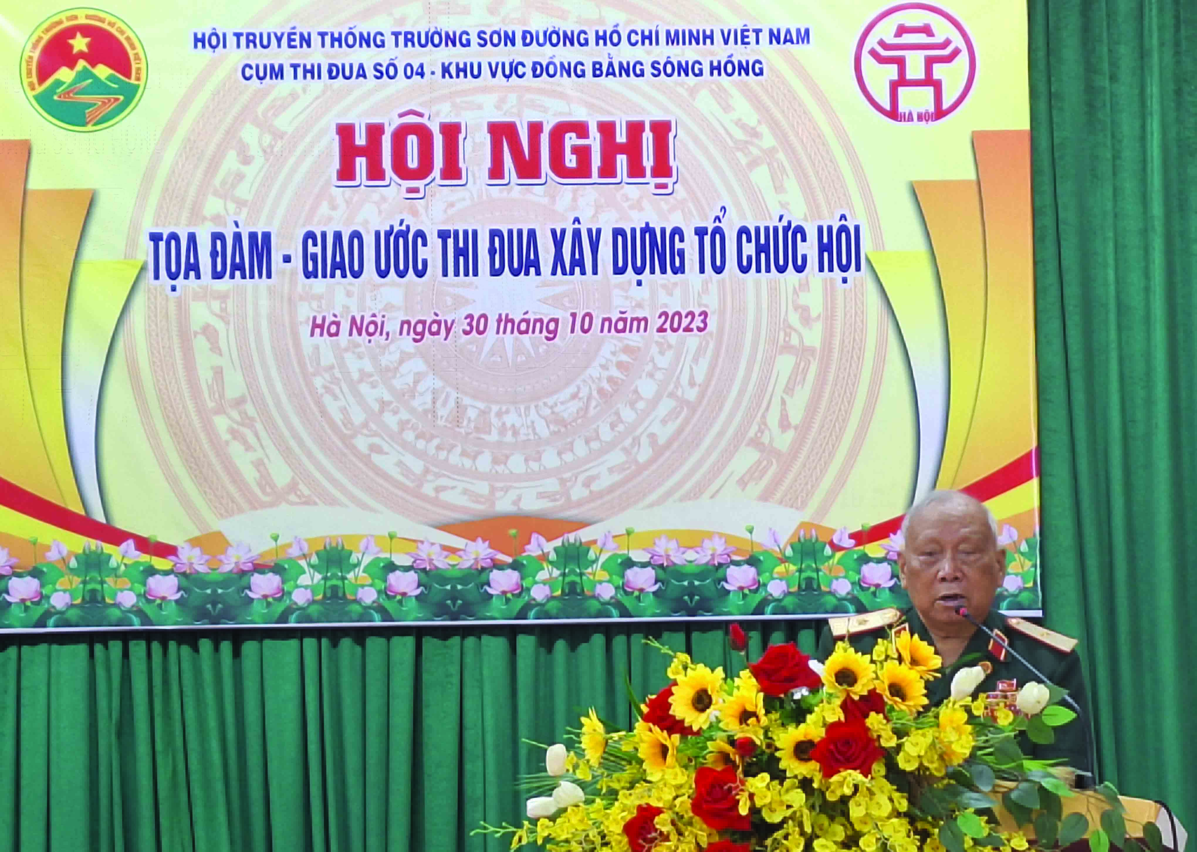 Sáng ngày 30-10-2023, tại hội trường UBND xã Hát Môn, huyện Phúc Thọ, thành phố Hà Nội. Hội Trường Sơn – đường Hồ Chí Minh thành phố Hà Nội – Cụm trưởng cụm thi đua số 4 (gồm Hội Trường Sơn tỉnh Nam Định, Hà Nam, Ninh Bình, Hòa Bình và thành phố Hà Nội), tổ chức hội nghị tọa đàm – giao ước thi đua xây dựng tổ chức Hội.