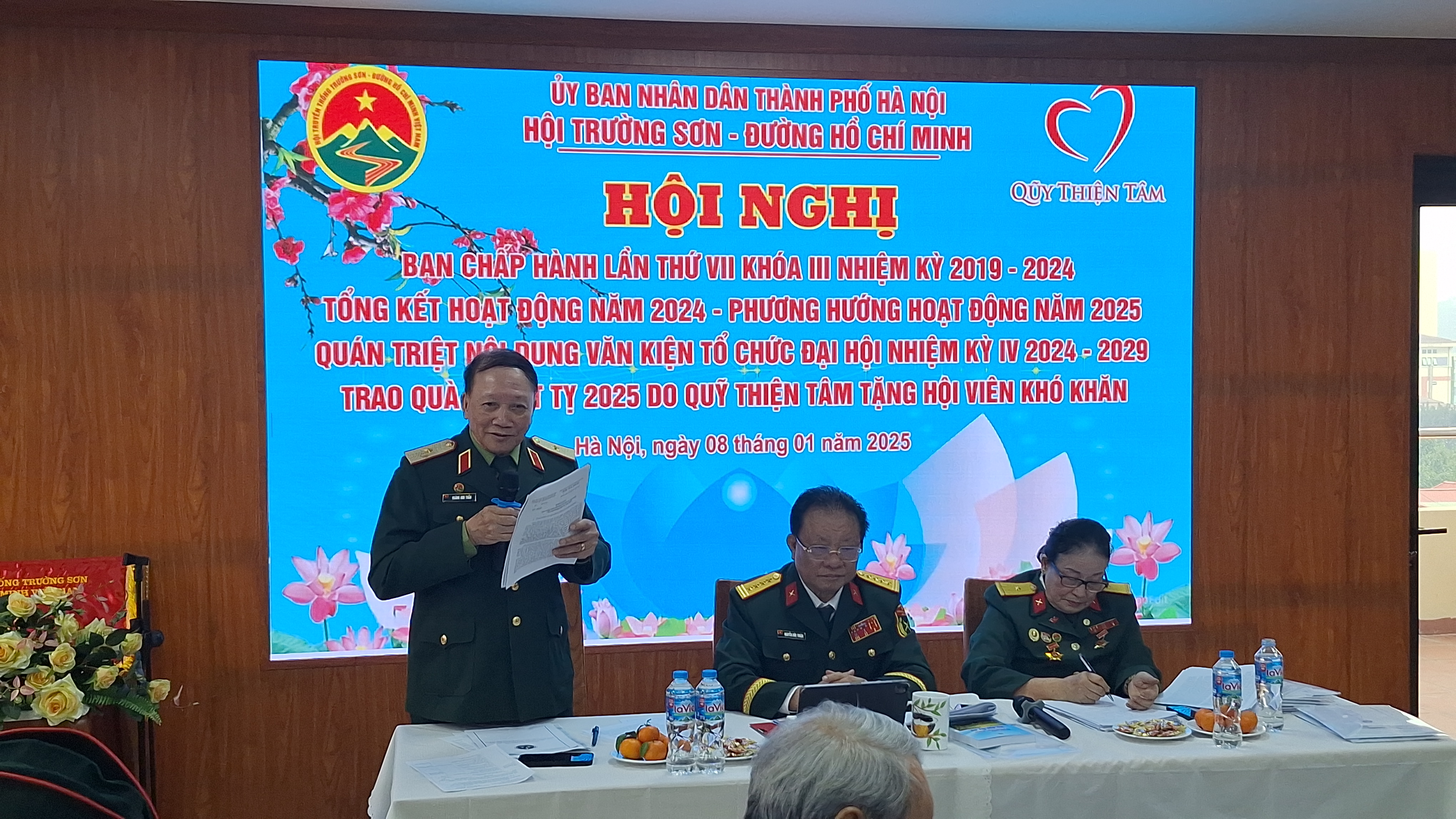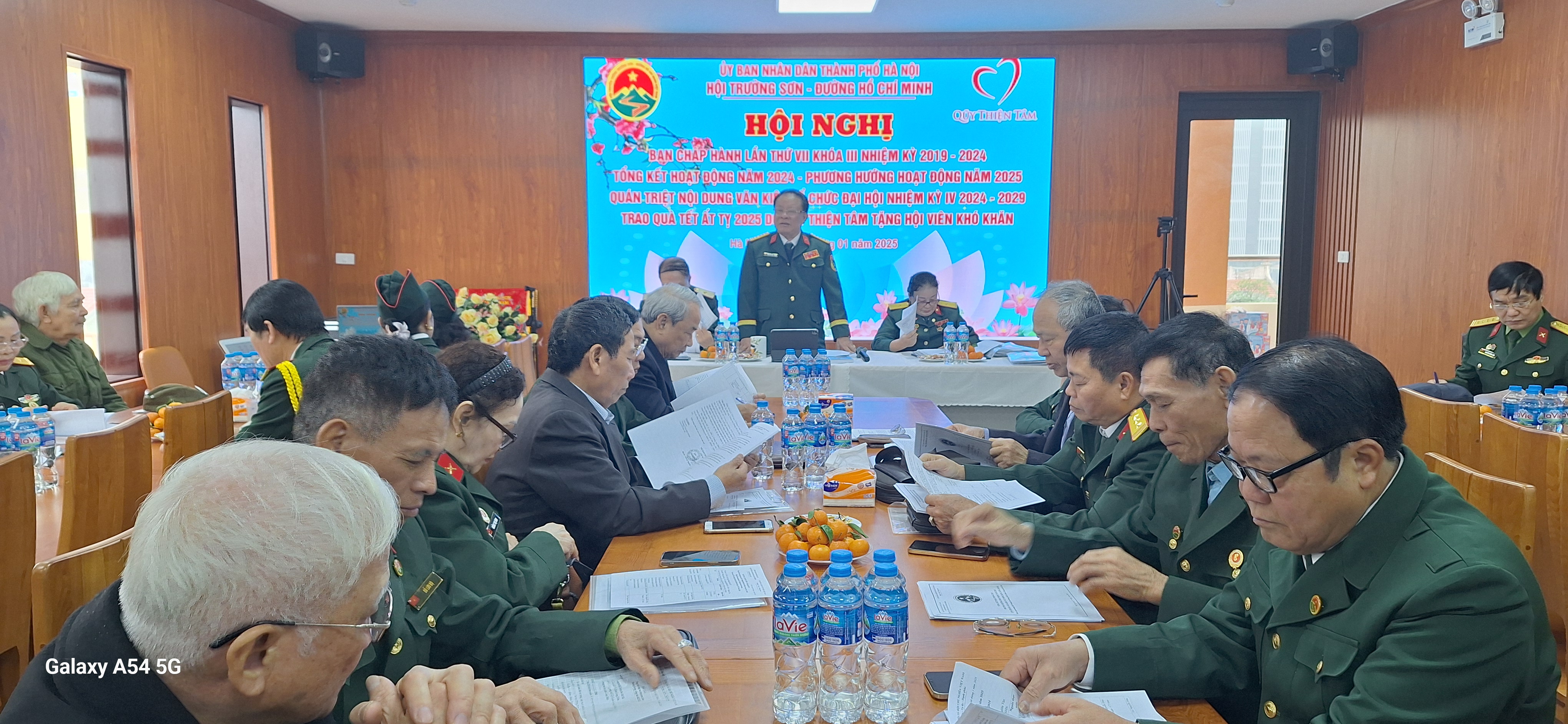 Sáng ngày 8/1/2025, tại văn phòng hội- Nghĩa Tân, Cầu Giấy, Hà Nội; Hội Trường Sơn-Đường Hồ Chí Minh thành phố Hà Nội (Hội TSHN) tổ chức hội nghị Ban chấp hành: Tổng kết các mặt công tác năm 2024, triển khai chương trình công tác năm 2025, thông qua đề án chuẩn bị Đại hội nhiệm kỳ 4 (2024 – 2029). Tổng kết hoạt động Cụm thi đua số 4 - Khu vực đồng bằng sông Hồng ( năm 2024 Hội Trường Sơn thành phố Hà Nội làm cụm trưởng ) và bàn giao nhiệm vụ cụm trưởng năm 2025 cho Hội Trường Sơn tỉnh Nam Định.