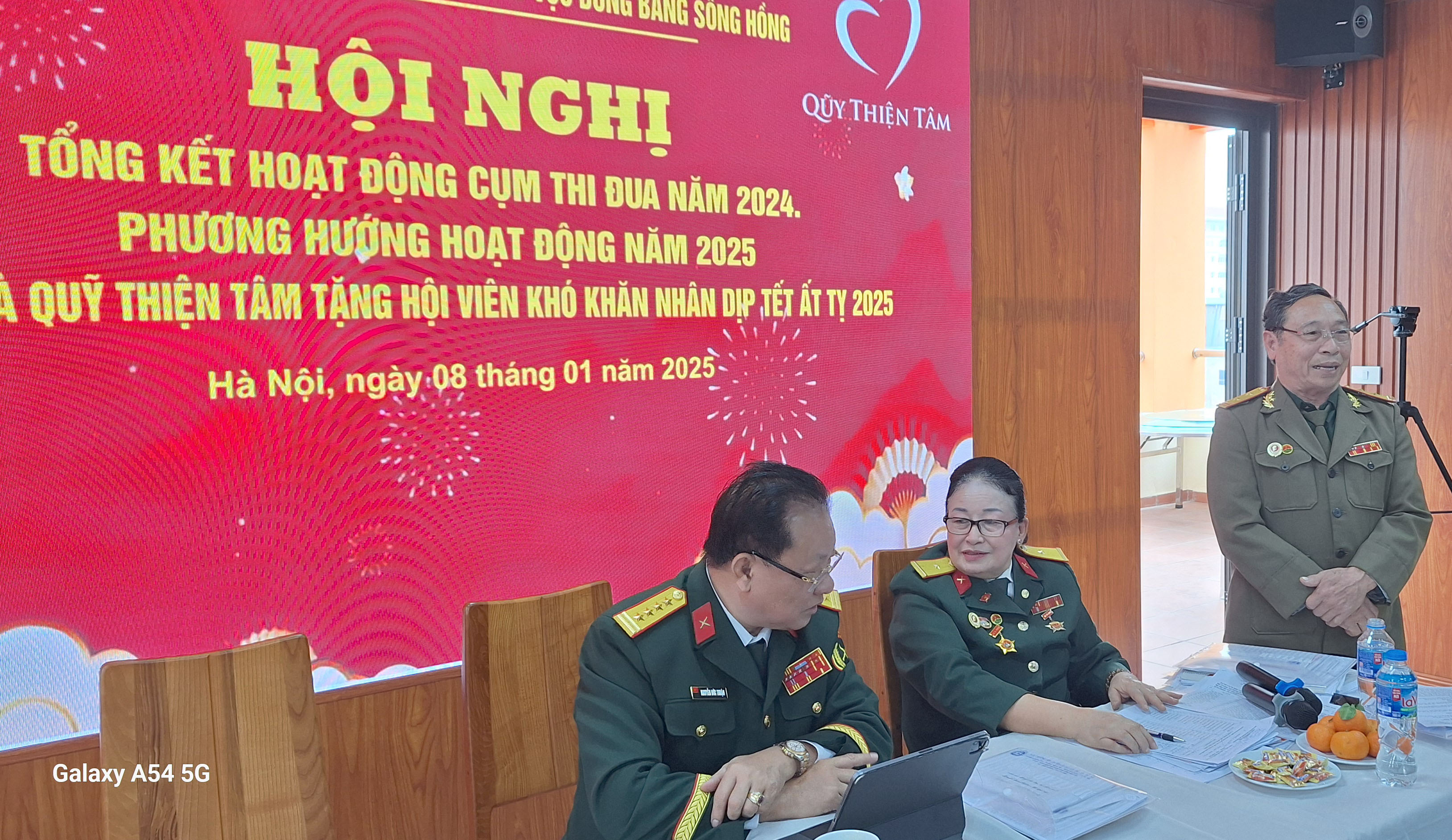 Đồng chí thiếu tướng Võ Sở và đồng chí thiếu tướng Hoàng Anh Tuấn đã phát biểu, biểu dương, ghi nhận kết quả công tác năm 2024 của Hội TSHN, với vai trò Cụm trưởng cụm thi đua số 4, cụm đã phát huy rất tốt việc kết nối, phối hợp thực hiện các chương trình công tác Hội, nhất là thăm hỏi tặng xe lăn, tặng quà đối tượng chính sách; quyên góp ủng hộ các tỉnh bị thiệt hại nặng nề do bão số 3 gây ra; kỷ niệm 65 năm ngày mở Đường Hồ Chí Minh, ngày truyền thống Bộ đội Trường Sơn và 80 năm ngày thành lập Quân đội NDVN...