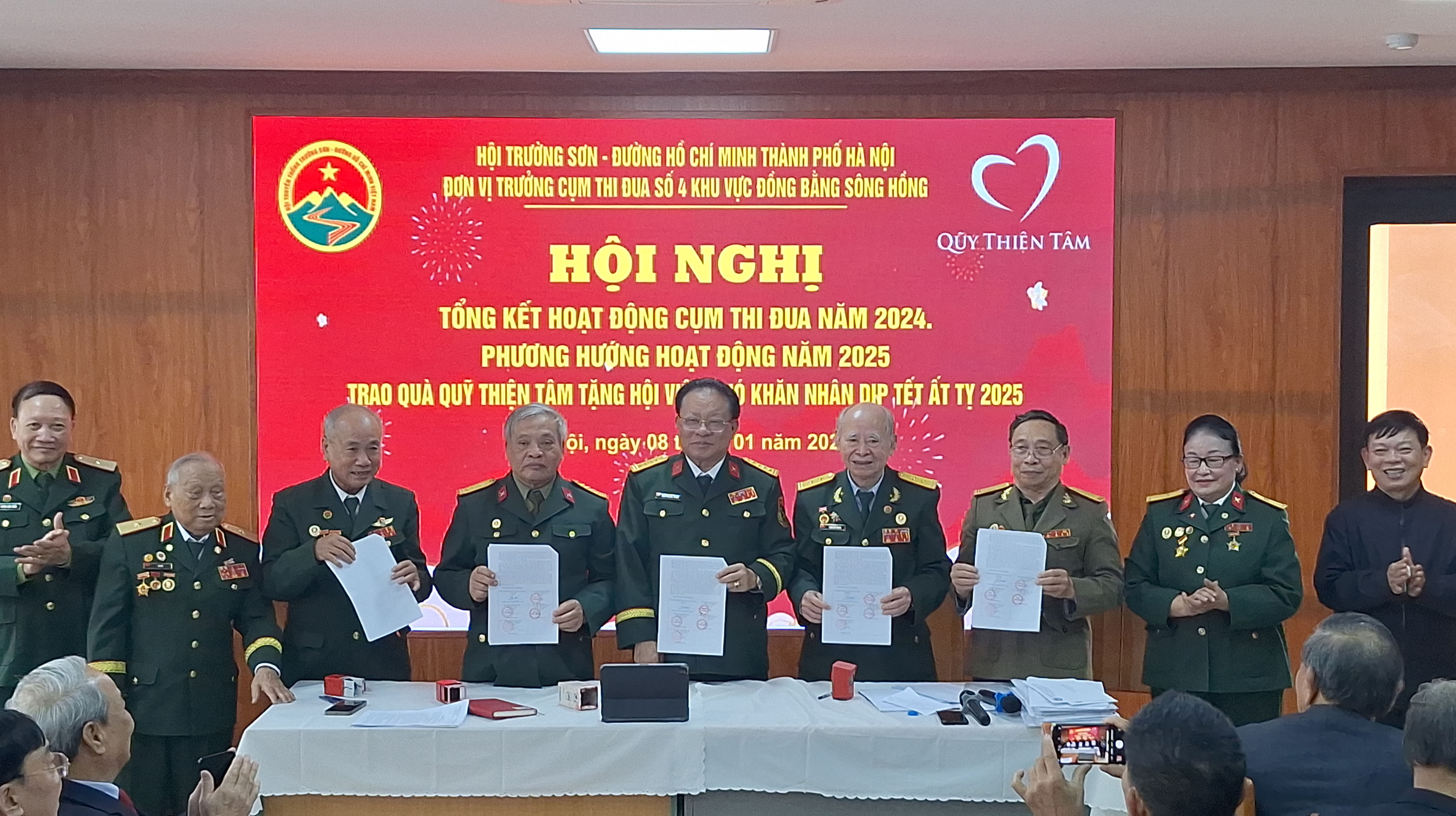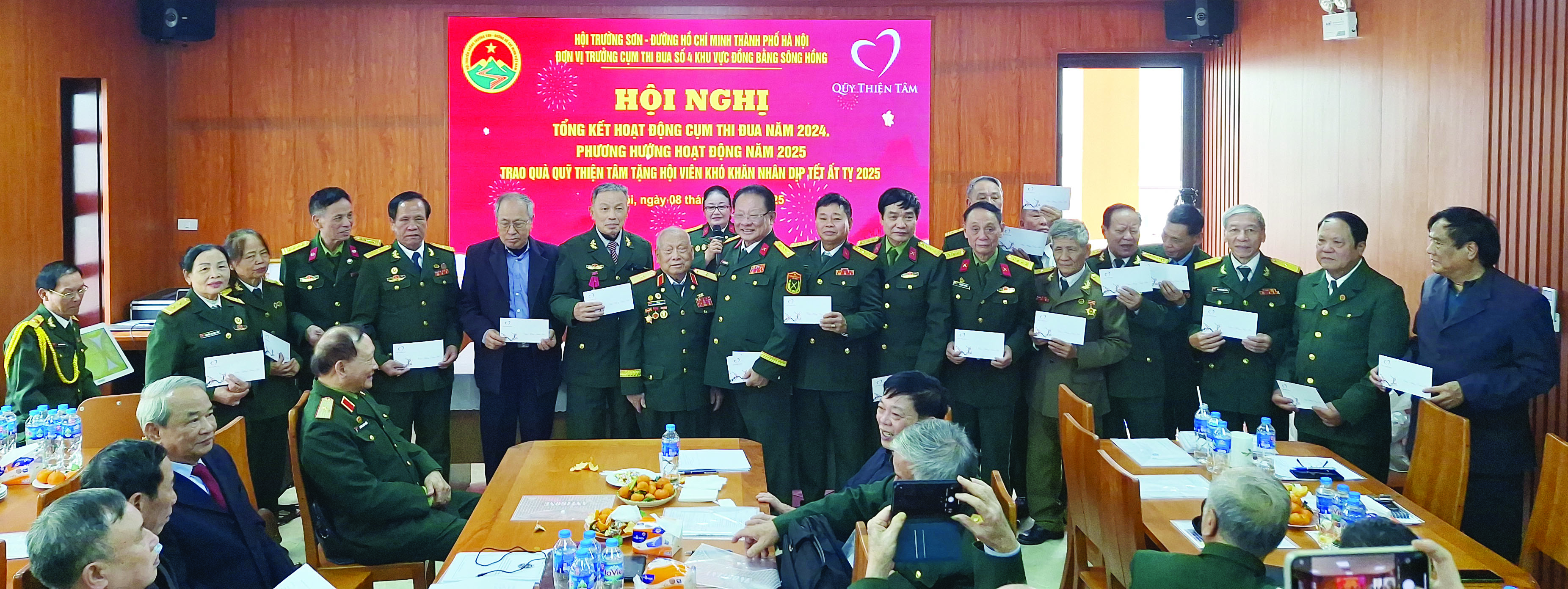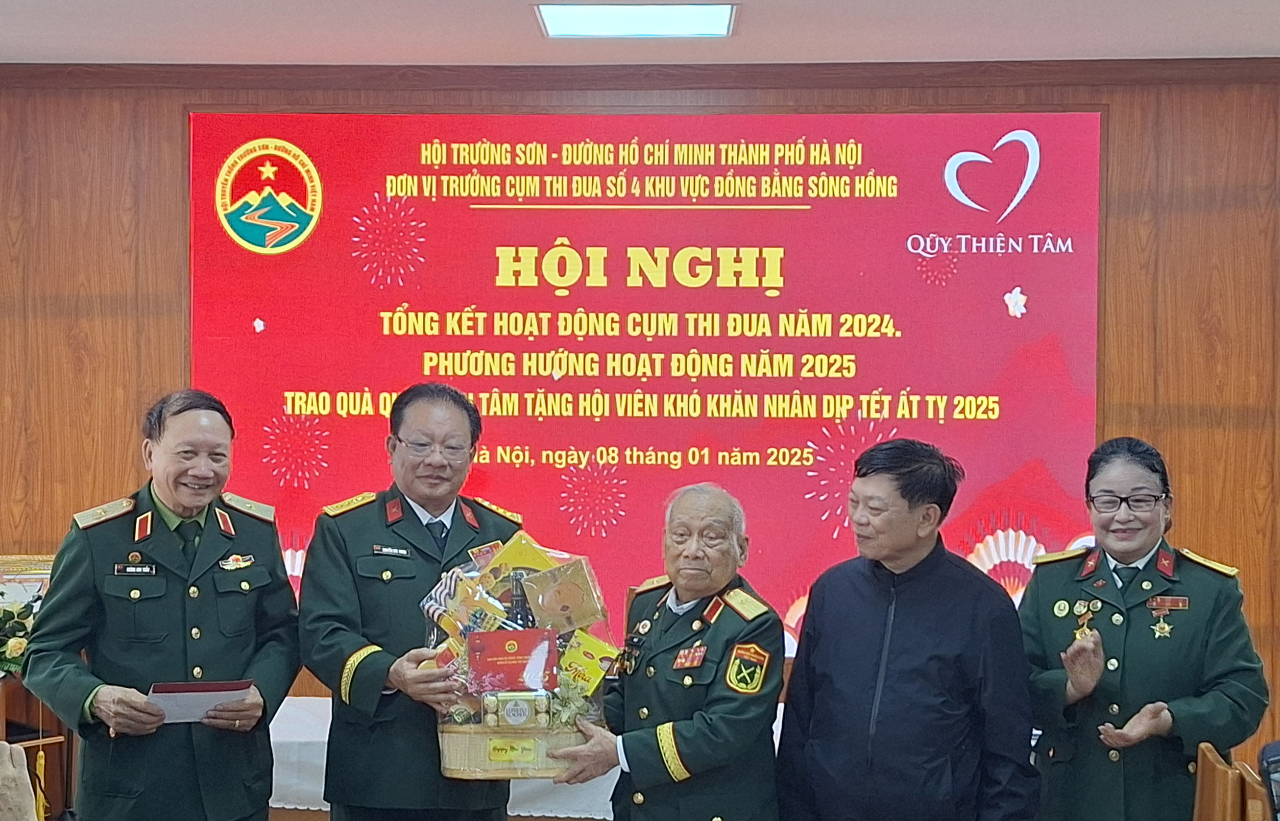 Lãnh đạo Hội TSVN đã trao tặng Cờ đơn vị xuất sắc Cụm thi đua năm 2024 cho Hội TSHN; trao tặng Bằng khen cho Hội Trường Sơn tỉnh Nam Định, Hội Trường Sơn tỉnh Hoà Bình và tặng quà chúc tết Hội TSHN.