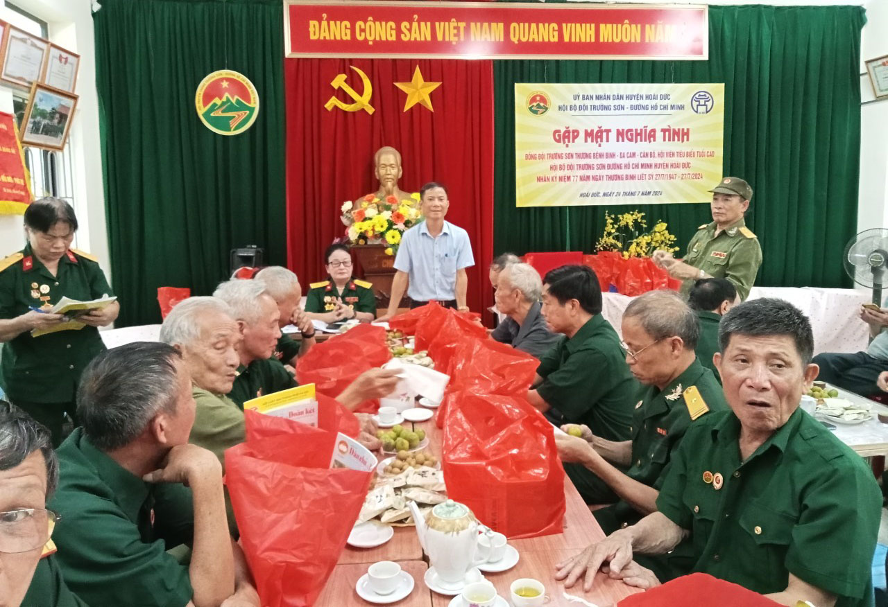 Sáng ngày 25-7-2024, tại văn phòng hội, Hội Trường Sơn huyện Hoài Đức, tổ chức gặp mặt tri ân các đồng chí Thương bệnh binh, gia đình Liệt sỹ, Hội viên Trường Sơn diện chính sách của các xã thị trấn trong huyện Hoài Đức.