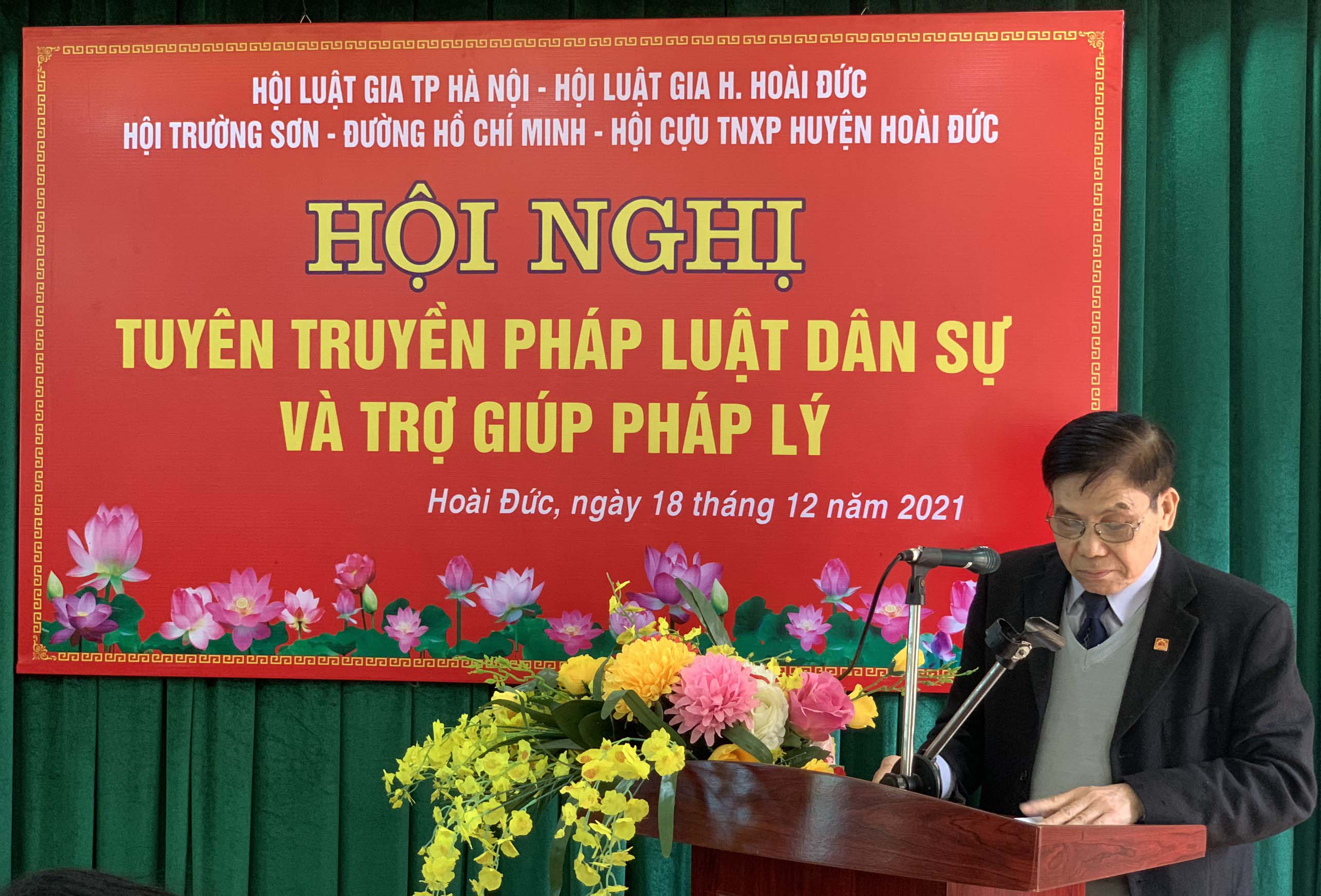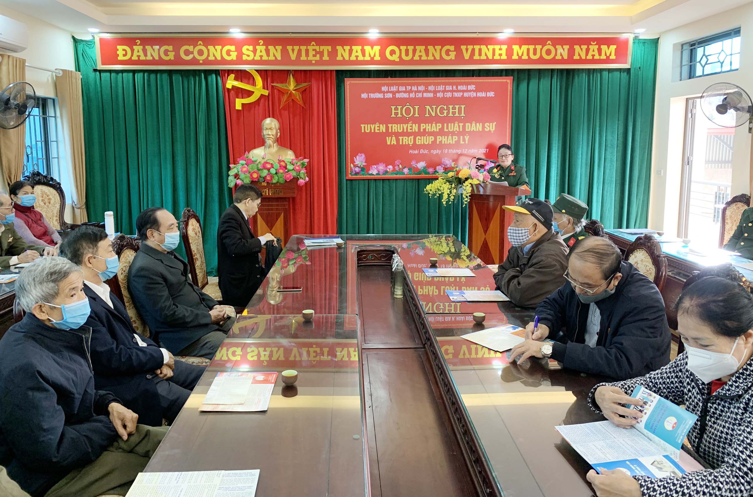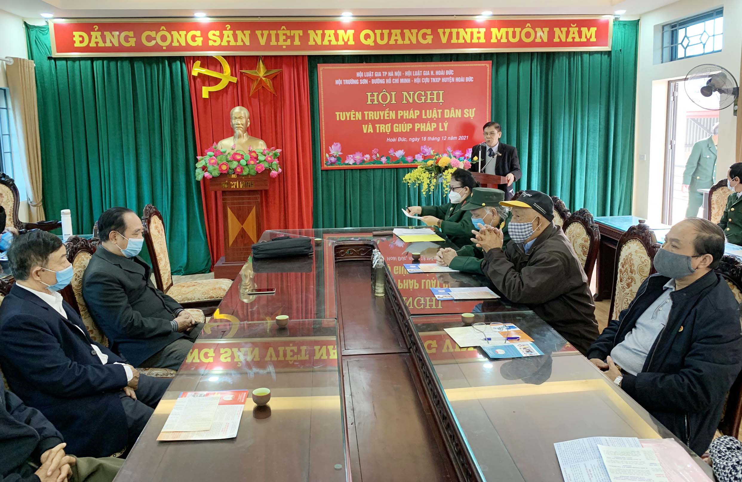 Sáng ngày 18/12/2021, tại hội trường liên cơ quan huyện Hoài Đức, Hội Trường Sơn phối hợp với ngành Tư pháp, tổ chức tuyên truyền, phổ biến pháp luật cho hội viên Trường Sơn trong huyện. Đây là lần thứ 2( tháng 11 và 12 năm 2021) Hội tổ chức tuyên truyền và phổ biến pháp luật cho hội viên Trường Sơn trong huyện.