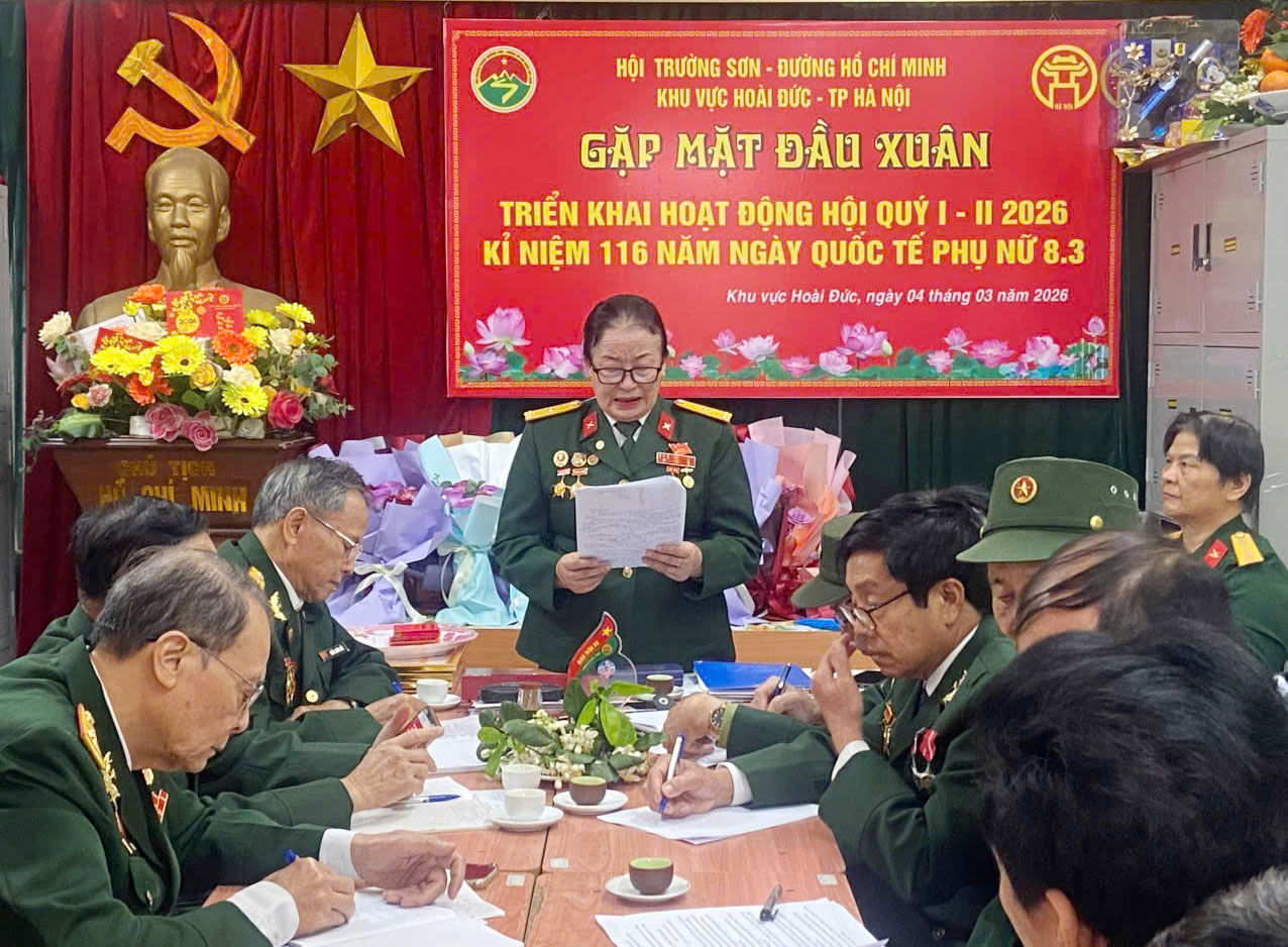 Sáng ngày 5-3-2026, tại văn phòng hội, ban chấp hành hội Trường Sơn-Đường Hồ Chí Minh khu vưc Hoài Đức, tổ chức họp mặt đầu xuân để đánh giá kết quả hoạt động hội trước, trong và sau tết; Triển khai hoạt động Quý I-2026 ; Phát động xây dựng "Quỹ nghĩa tình Trường Sơn tự góp" và Kỷ niêm 116 ngày quốc tế phụ nữ 8-3-2026 .