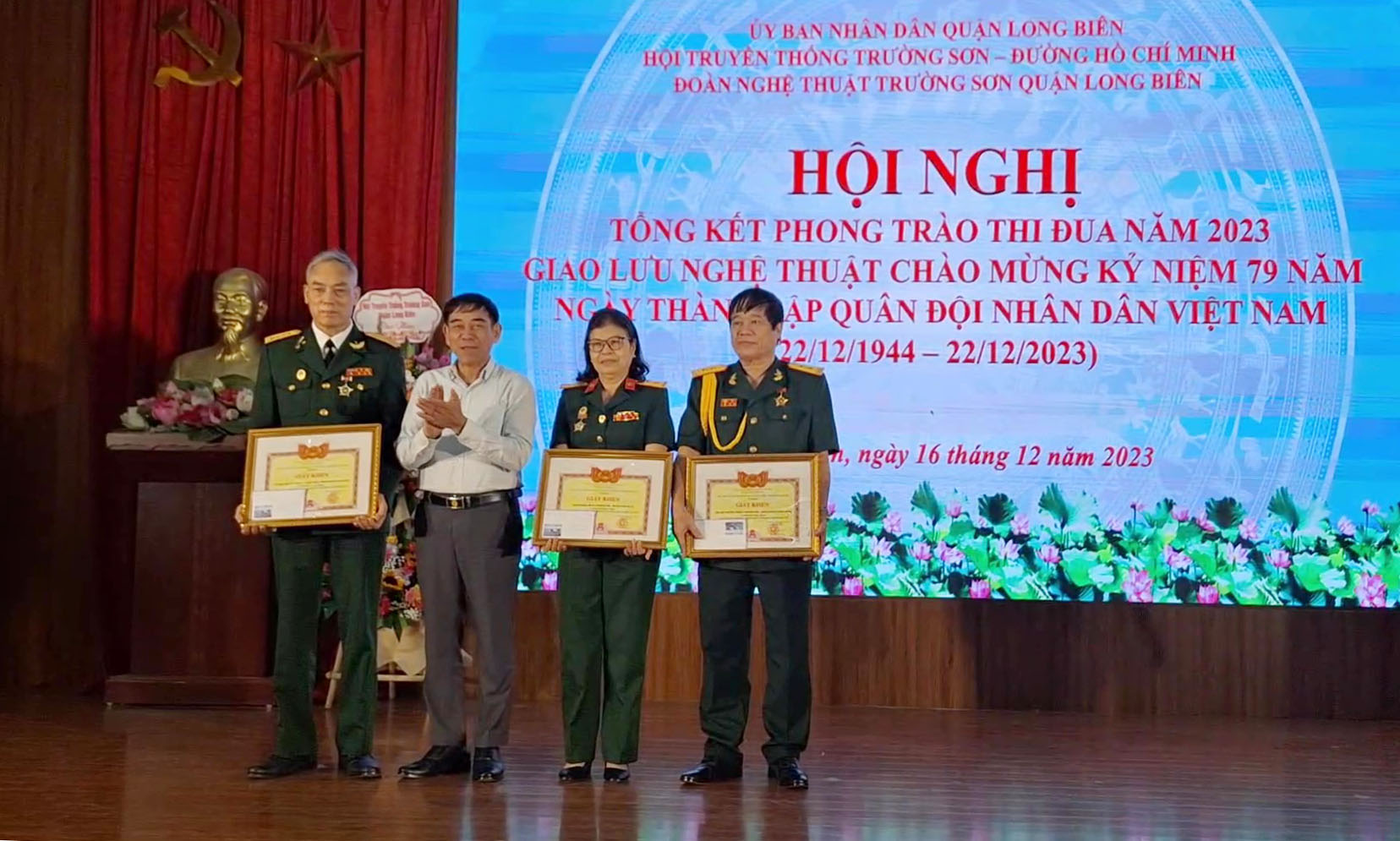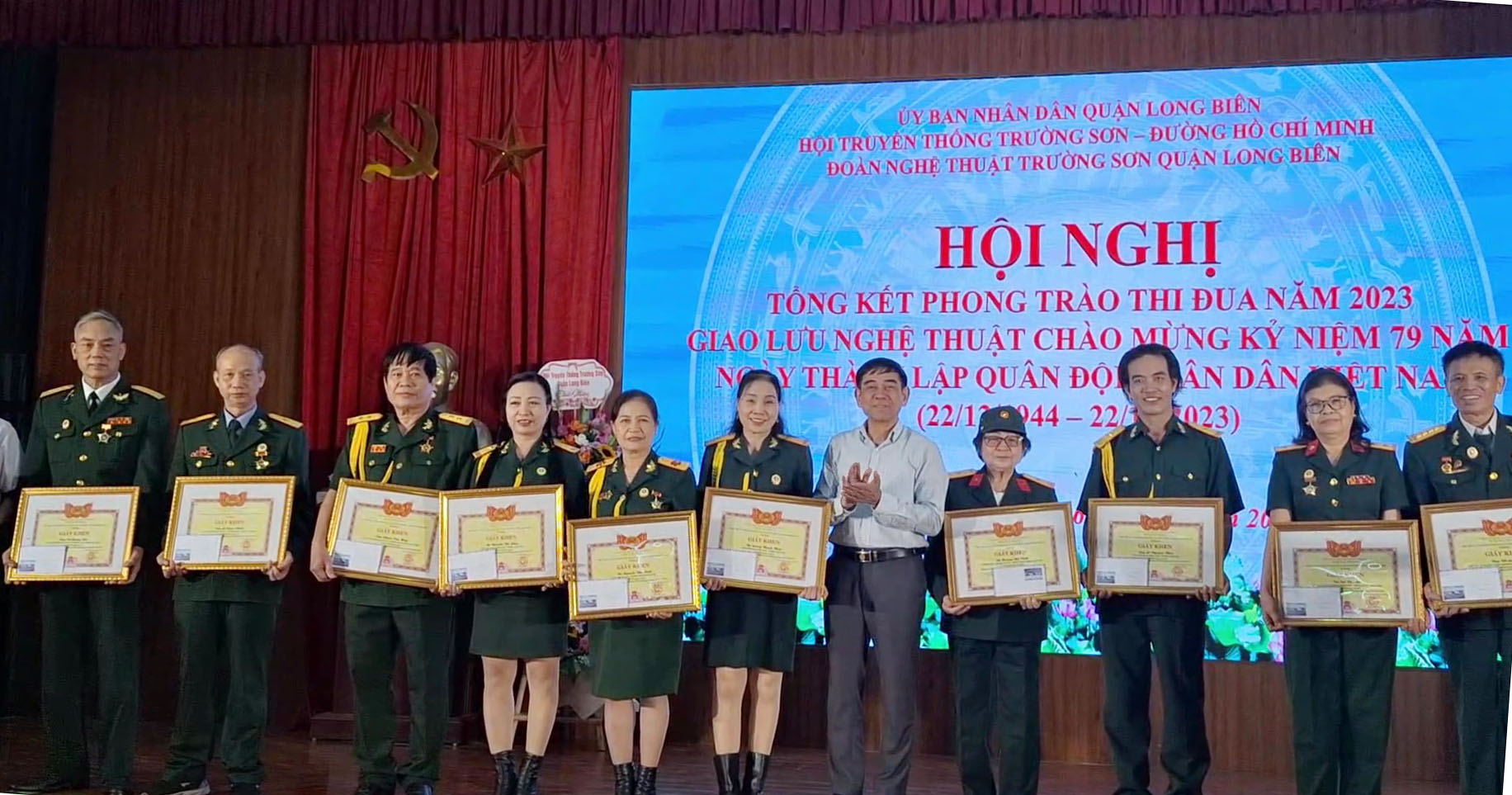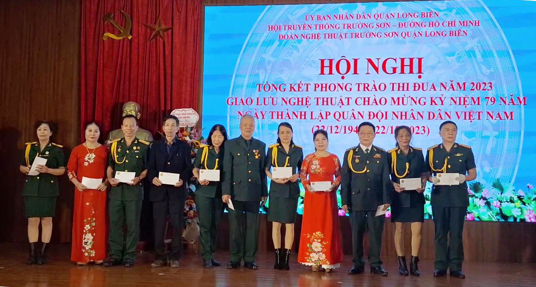Ban chấp hành Hội Trường Sơn quận Long biên đã trao tặng Giấy khen của UBND quận Long Biên cho các tập thể và cá nhân xuất sắc trong công tác hội năm 2023; trao thưởng cho các diễn viên của đoàn nghệ thuật Trường Sơn quận Long Biên có thành tích xuất sắc trong biểu diễn nghệ thuật phục vụ nhiệm vụ chính trị của đoàn.