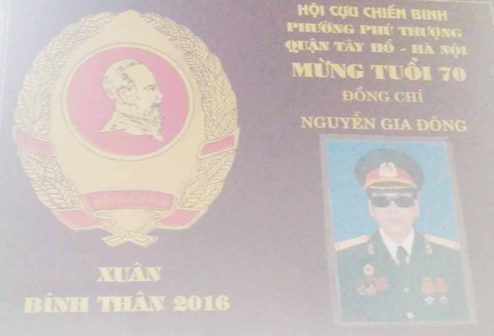 Bằng mừng thọ Thương binh nặng Nguyễn Duy Đông hội viên Hội Trường Sơn phường Phú Thượng.